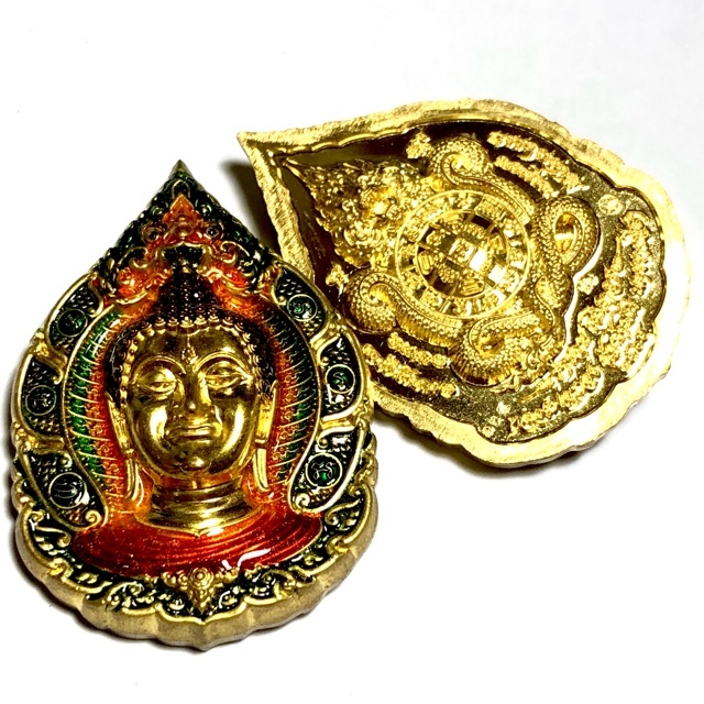 The Pra Nakprok Ram Ruay Ngern Tong was released in Late April 2564 BE in Buddha Abhiseka at Wat Ban Rai in Nakorn Rachasima, with Luang Por Tong, performing blessings and the opening of the eyes of the Buddha (Dhamma Chakra). The rear face of the amulets all have a Yant Paya Nak with Yant MOngkol Serm Duang in the center of the coiled Naga serpent Deity. Auspicious Incantations are encoded within the Yant Duang.