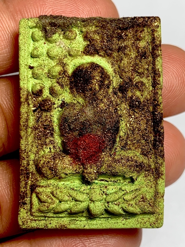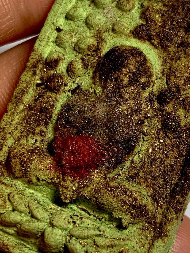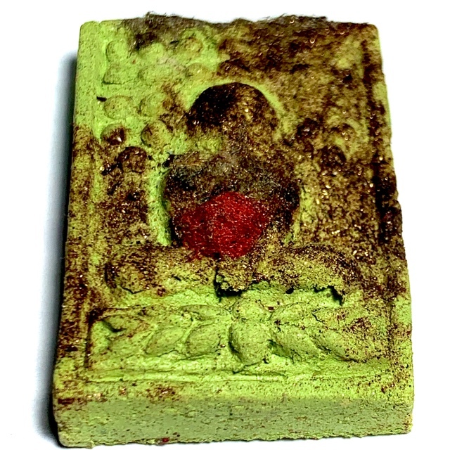 Pra Pidta Ruay Pan Lan Pong Graduk Phii Pim C Gammagarn - LP Somporn Wat Sotaram, in Nuea Pong Prai Graduk Phii Necromantic Muan Sarn Sacred Powders and Wan Thao Hlong green vine tincture, and Takrut scroll spell inserted into rear face. The image of Pid Ta is smeared with Prai Oil and has a strip of Jivara Robe affixed. This is Pra Maha Somporn's highly awaited edition, the Pra Pidta (Pid Tawarn) Run Ruay Pan Lan (1000 millions series); Nirodha Buddha Muan Sarn Sacred Prai Powder Votive Tablet, empowered with High Hoeng Prai Necromancy, using the Wicha of Wat Po Ta Tian.