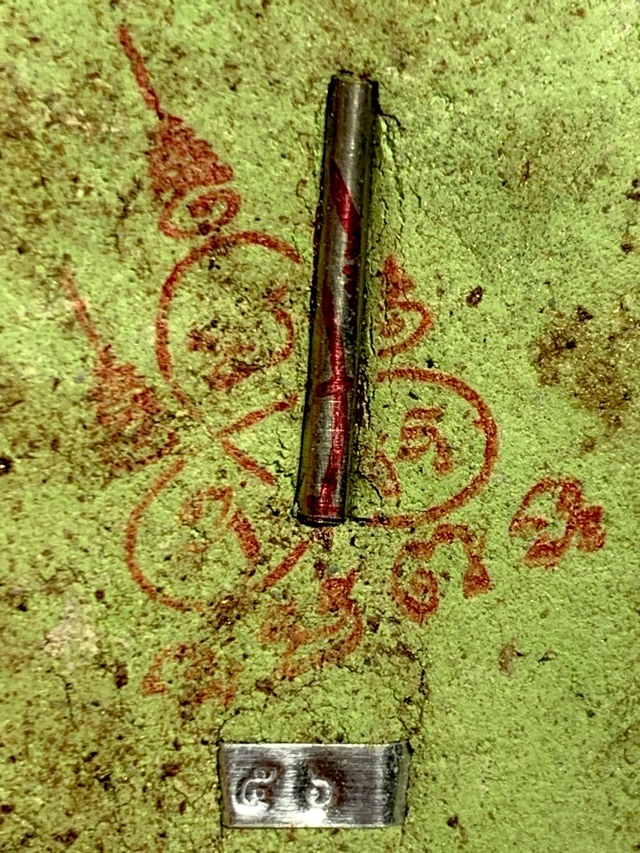 Only 99 amulets in each color were made in Ongk Kroo Pim C Gammagarn. This exhibit has a Takrut Maha Lap Magic scroll spell inserted into the highly concentrated Prai Muan Sarn, with the Yant Ongk Pra Buddha Yantra embossed in ink stamp, and numbered limited edition code stamp affixed. This amulet carries the number 56 series code in metallic stamp on rear face. This can be considered a sacred lucky number due to the allusion to the 56 Buddhas